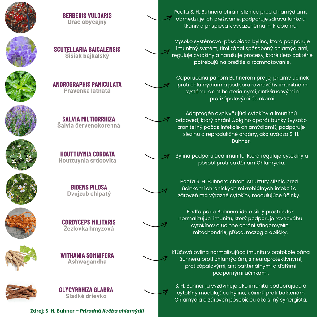 Suppléments recommandés selon le protocole Buhner pour Chlamydia au-delà de CHLAM-ELIX :