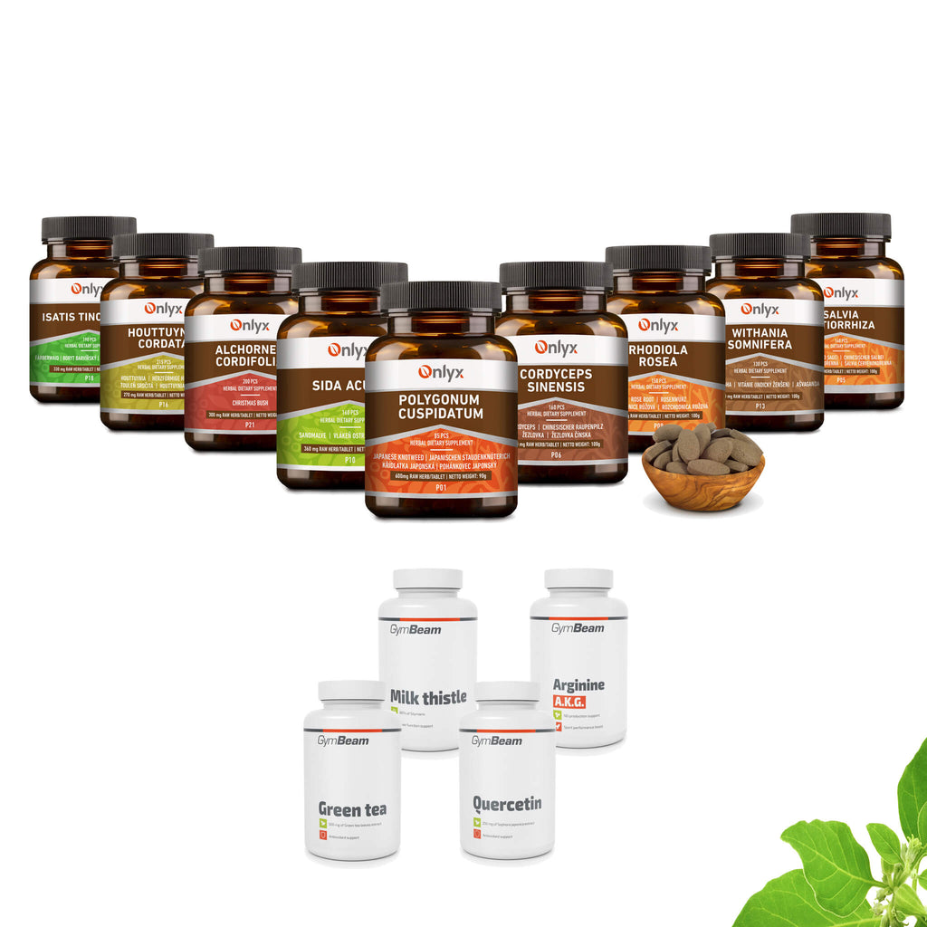 Balíček obsahujúci 13 základných produktov prevažne vo forme RAW bylinných tabliet v súvislosti s Buhnerovým protokolom na Bartonellu.